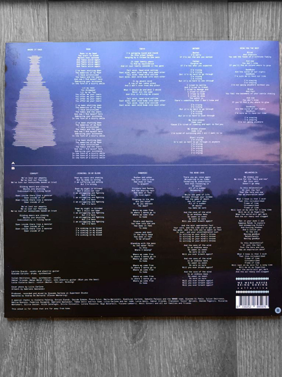 Komorebi, title track of the album and Japanese word that can be roughly translated as “the sunlight streaming through the leaves of the trees”, is a song about going back to your origins, intended as nature, as your "soul places". This song, written by Iulian and myself during a hot afternoon in the Milanese summer, tries to serve as a reminder that we are allmade of the same atoms that exist in rivers, bushes, trees and grasses. An attempt to challenge our self-perception as human beings and a choice to erase ourselves and jump in an ecosystem that, with or without us, keeps rolling.